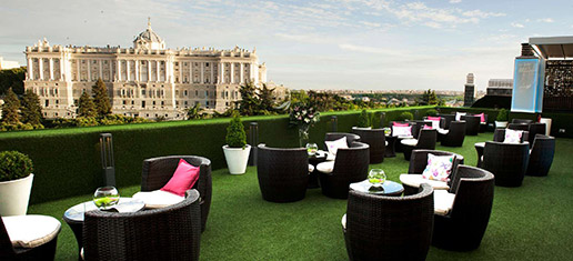 Con unas vistas privilegiadas al Palacio Real, la Terraza se encuentra en la azotea de Jardines de Sabatini Apartosuites.